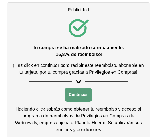 Los puedes conseguir gracias a Privilegios en Compras, club de compras independiente a Planeta Huerto que, bajo una suscripción mensual, ofrece a sus clientes abonos y descuentos. Puedes ver toda la información y condiciones de este club de compras aquí.