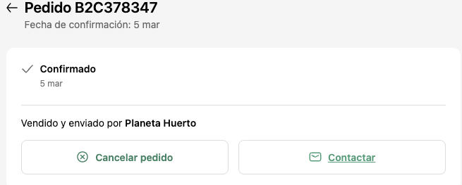Selecciona el pedido que deseas cancelar y haz clic en “Cancelar pedido” .