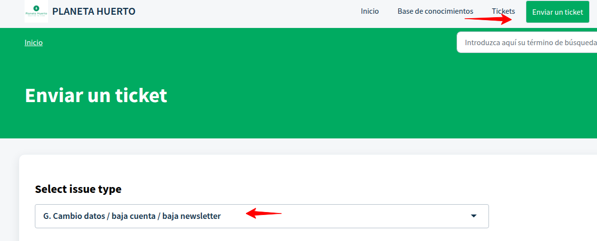 También puedes realizar la solicitud a través de nuestro portal de ayuda, seleccionando en el desplegable la opción Baja cuenta – opción G