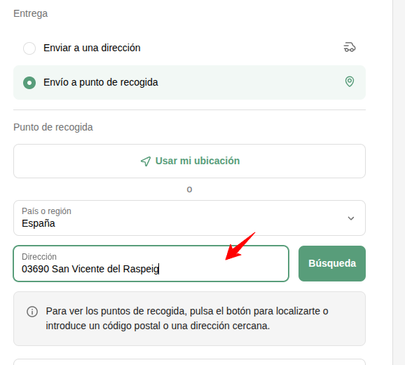 En el proceso de compra en el paso de envío elige “Enviar a punto de recogida”